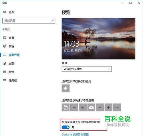 首先介绍系统更换图片方法: 如下图所示,进入“设置→锁屏界面”后,打开“在登录屏幕上显示锁屏界面背景图片”进行修改。因此,想要更换登录背景,只要更换锁屏背景即可。