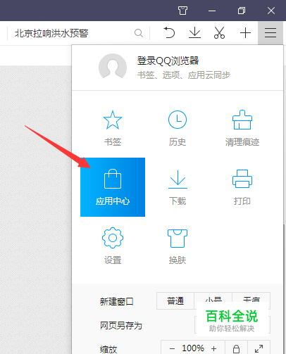 第一步打开QQ浏览器 点击右上角灰色部分 打开应用中心