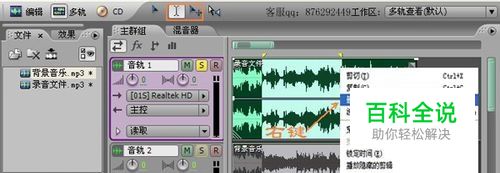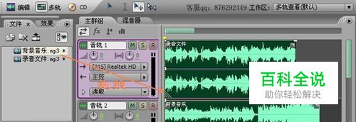 下面的是我剪辑好的音频文件,截个图给大家看看,给录音添加背景音乐。当然,如果你还想要剪辑背景音乐的话,那么你就可以按照上面剪辑录音文件的方法进行。也要把音轨2前面的独奏按钮点开,并且把音轨1的独奏按钮关掉,即可进行剪辑啦。超简单的有木有!