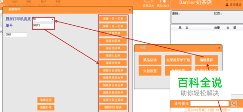 进入紫光有美食•云餐饮管理系统收银前台,打开右下角“设置”“编辑票样”选择打印宽度,输入已经结账的“单号”,点击需要编辑的小票。(如图)