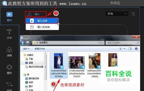 点击“导入”,选择“导入文件”,选择并打开要编辑的视频。也可以选择直接把视频素材拖放到当前位置。