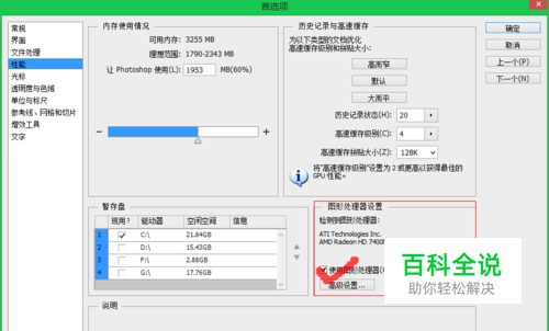 编辑——首选项——性能——图形处理器设置——勾选“使用图形处理器。如图: