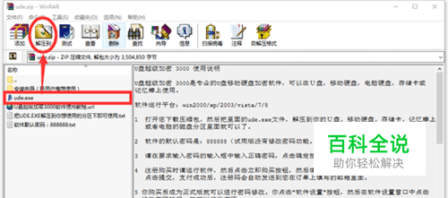1把下载的压缩包里面的ude.exe文件解压到需要使用的U盘中。软件可以放在U盘的根目录下,或者U盘的任意文件夹里面(但软件所在文件夹无法加密)。