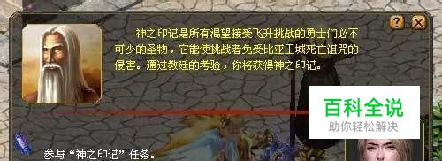 与教廷大法师·崔尔登对话后,可参加飞升前置任务——神之印记,同时了解到神之印记的合成方法。