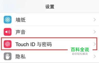 在iPhone主屏上找到设置图标,点击打开它,进入iPhone设置页面,打开Touch ID与密码。