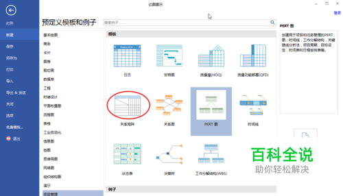 打开亿图,在”文件“的”工程管理“类别选择”关系矩阵“模板,并双击打开。