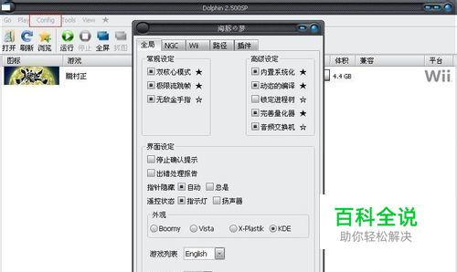 wii模拟器设置(WII模拟器使用教程):1.打开海豚EX或SP(这两个版本的设置是一样的,这里只讲解SP) Config-插件配置(所有的设置在这里一目了然)