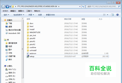 解压好proe5.0软件包,如图: