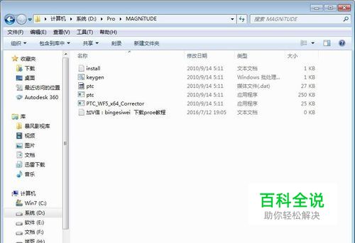 下来 就是破解文件的复制,首先在“MAGNITUDE”文件夹中复制“PTC_WF5_X64_Corrector”到你安装proe软件的根目录下。如图: