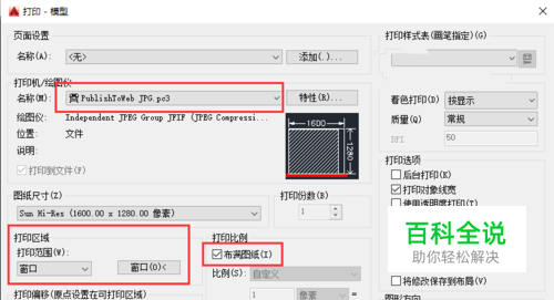 用CAD打印成JPG格式图片 这种方法生成图片的质量比较满意,一般情况下够用了。 执行CTRL+P打印后,打印机名称选择 “PcblishToweb JPG.pc3 ”这个打印机。设置好保存路径和名称然后预览并打印,CAD就会在设置的保存路径生成这个给定名称的JPG文件,然后将此JPG文件导入PS即可。