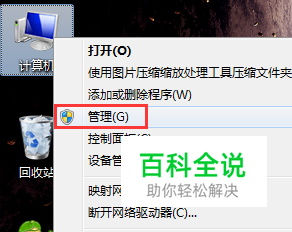 插入u盘,右键计算机图标,点击“管理”,如图所示: