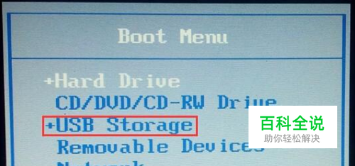 进入启动项选择界面,选择USB驱动所在的选项,按回车键确定,如图所示: