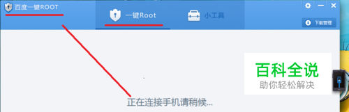 将手机数据线插入电脑USB接口,当电脑成功识别手机设备后,显示成功连接后,请选择获取手机root权限,然后等待手机root完成;