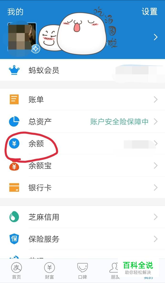打开支付宝,进去首页后,点击右下方“我的”,进入以下界面,可以看到“余额”菜单。