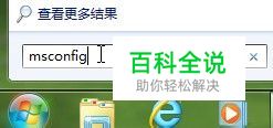 我们可以通过在开始菜单的搜索框里直接输入msconfig后回车,即可打开“系统配置”窗口。