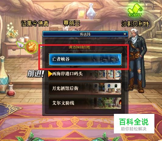 首先,回到赛丽亚的房间,使用房间右侧的传送阵前往“亡者峡谷”。