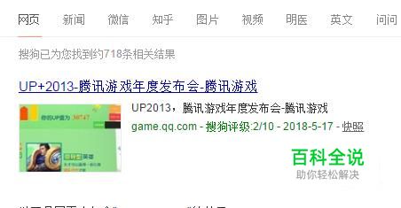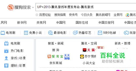 首先,在出口浏览器中输入UP+2013-腾讯游戏年度发布会-腾讯游戏并点击回车键,如下图所示。