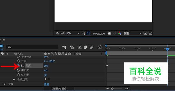 此外,如果你觉得投影比较硬的话,可以对“柔和度”进行调整,不用加关键帧,一直保持相同柔和度就行了。