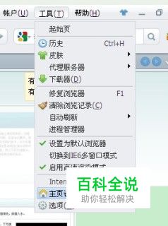 打开浏览器,选择工具—主页设置弹出主页设置对话框,以360浏览器为例然后将你想设置的主页网址填进去然后点击确定,注意一定要带上http://
