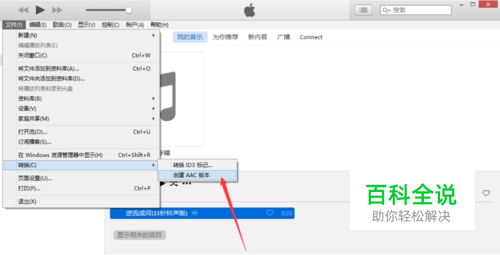 编辑铃声格式 选择住上传的铃声-文件-转换-创建ACC版本 右键选择多出来的铃声文件-在windows资源管理器中显示