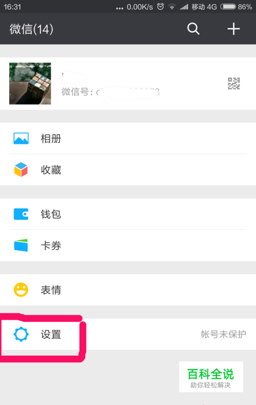 首先打开微信,点击下方通知栏中的”我”,查看自己的微信号信息,然后按设置。