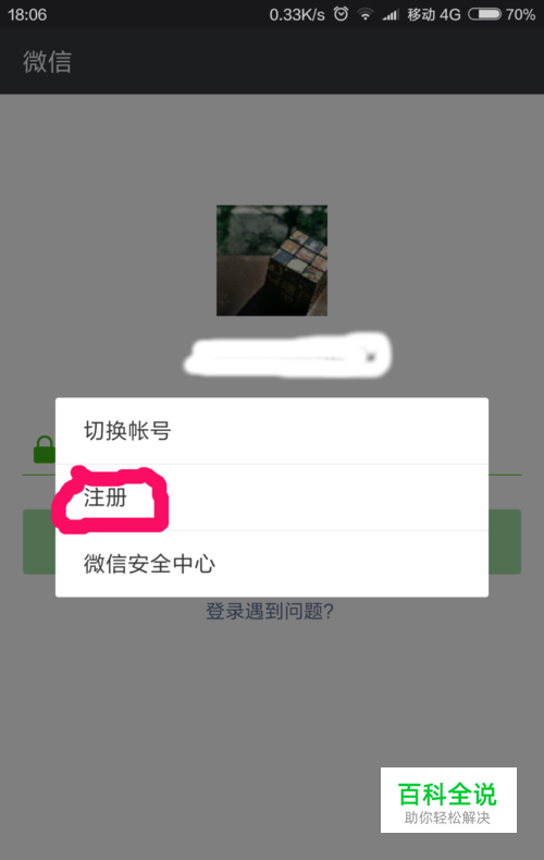 点击后会弹出三种选择,点击注册,然后就可以用自己解绑的手机号再去重新注册一个微信号了,完善信息后就OK了。
