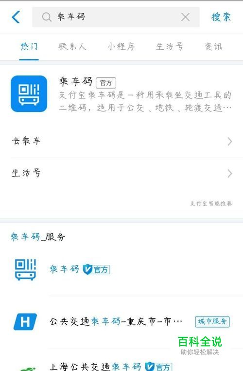 在最上方的搜索框中输入“乘车码”,可以看到乘车码官方号。