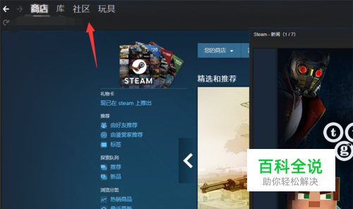 进入steam的主页,我们先点击一下社区,先看看我们安装的steam是否会遇到这个问题。