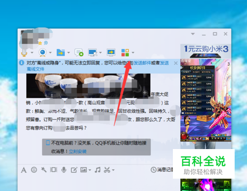 接到消息后我们 点击如图这个彩色的图标,进入工具选项。