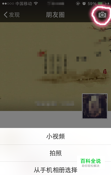 下面来跟大家说说如何发布不带图片的朋友圈。用手指 长按 朋友圈右上角的“相机”图标,注意是长按,就会弹出不用添加图片的朋友圈发布界面,如下图所示。