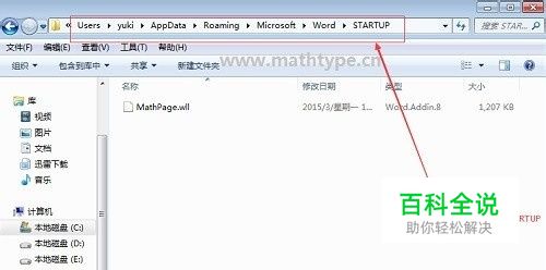 将MathPage.wll复制到C:\Users\yuki\AppData\Roaming\Microsoft\Word\STARTUP中。