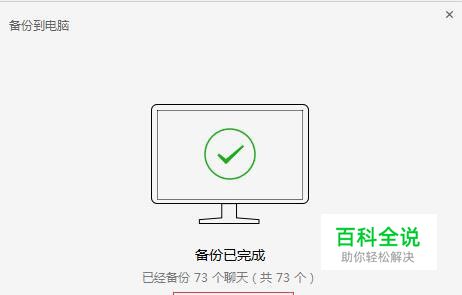 等待备份数据 手机确认备份后,聊天记录就会备份到电脑。 并且显示备份的进度条。 等待备份完成, 完成后在电脑和手机上点击确认即可。