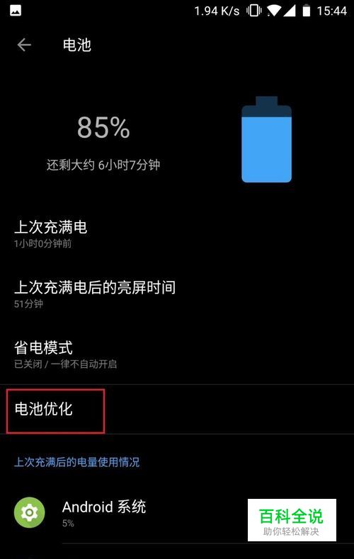 庵后在电池设置中我们可以看到下面有电池优化,这里进入电池优化