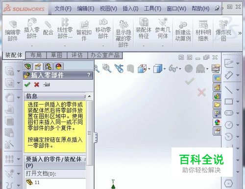 进入装配体模式,准备插入第一个零件,如图所示