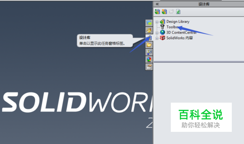 进入设计库 选择窗口右侧的设计库,进入设计库中。在设计库中会找到需要的软件Toolbox,进行标准件生成。