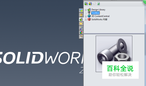 一是打开solidworks,点击设计库中的Toolbox,选择需要生成的零件,并点击右键生成配置