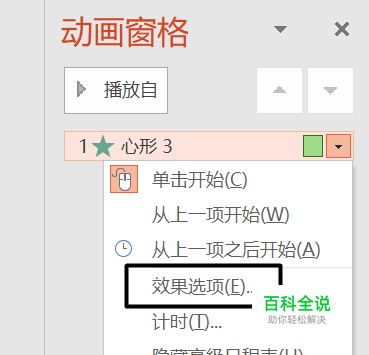 然后点击菜单栏中的动画效果后面的下拉三角按钮,之后就会出现如下图所示的另一个菜单,选择其中的效果选项。
