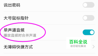 【单声道音频】是开着的(系统设定),那么,我们就开启下,如图。