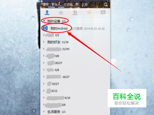 第一步登陆手机qq,连上WiFi最好。 然后是开启电脑qq,登陆后,点击我的设备-我的手机。