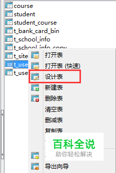 首先介绍使用navicat来给mysql表添加字段和设置默认值,后面在介绍直接使用sql语句方式。 打开navicat工具,连接上mysql数据库服务,如图可以查看所有表,选择其中一个需要添加字段的表,然后右击选择设计表