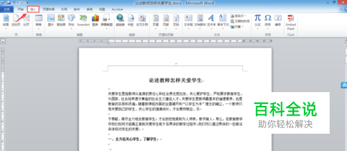 打开一篇word文档,点击菜单栏中的【插入】按钮