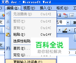 在word文档的编辑下找到更新输入法词典,然后打开它,如下图。
