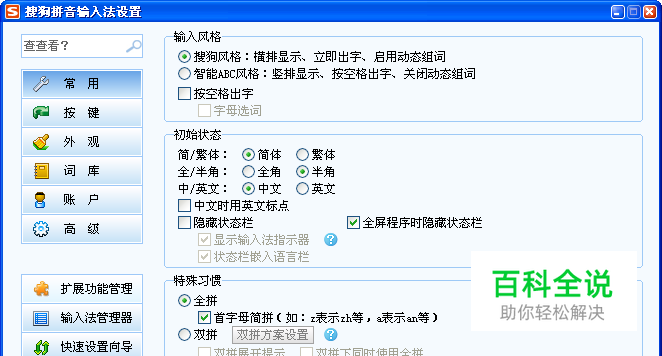 在输入法设置里找到扩展功能管理,然后打开它,如下图。