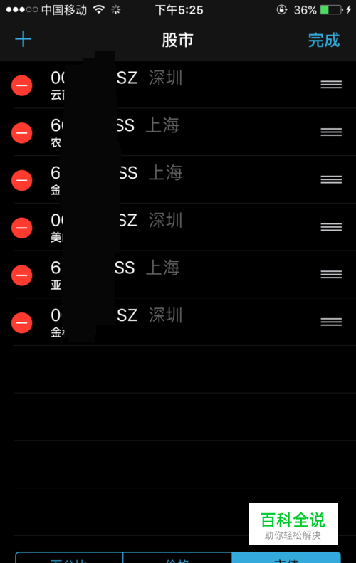 点击右下角的类似分栏的图标后,可对已添加的股票进行管理:删除或添加。