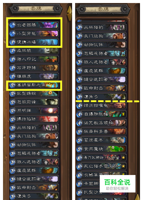 猎人通关思路是亡语,冰墙是很好的牌,相当于灰熊了,塞纳留斯之角只用过一次,拉出恩佐斯(只有这一次出场),唯一的作用是耗费对面的解牌,小型背包聊胜于无。 ps:最好是亡语+大哥五费,这样dk捏亡语大怪也是五费。