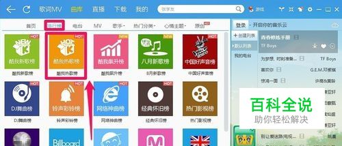 然后点击排行榜,酷我热歌榜!