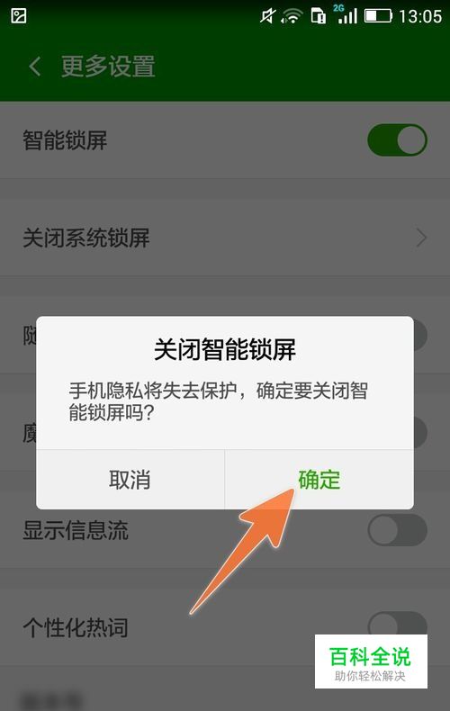 这时,会弹出一个提示框,要关闭的话,直接点击确定就可以了,如此这样关闭后,那个向右滑动来解锁的界面就没有出现了。