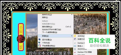 刷新或者注销一次系统,再右键点击桌面空白处 - 新建,发现已经恢复文本文档二级菜单 。