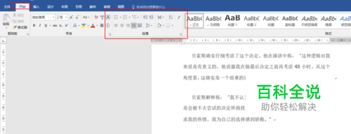 打开Word文档,在菜单栏【开始】下面找到【段落】工具。