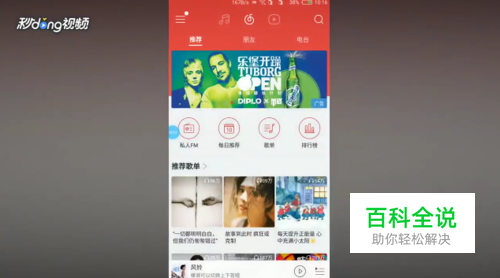 首先打开网易云音乐app,点击首页上方的“音乐”图标。